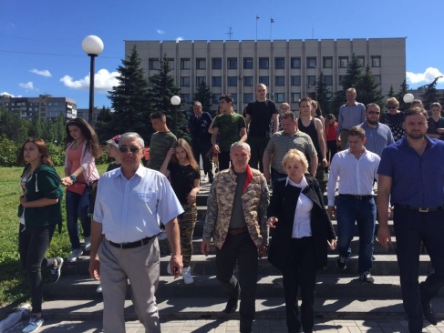 Алексей Журавлев с соратниками и главой Алчевска Натальей Пятковой.