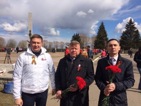 Бахлаев вместе с соратниками возложил цветы к мемориалу в Гостилицком поселении и поздравил жителей района с Днем победы.