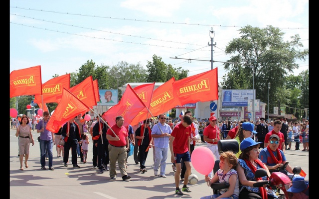 В этот день на главной площади Дзержинска традиционно состоялся торжественный парад представителей предприятий и организаций города. Местное отделение партии "РОДИНА" в Дзержинске не осталось в стороне: партийцы под красными знамёнами в числе других политических партий прошли по главной площади города.