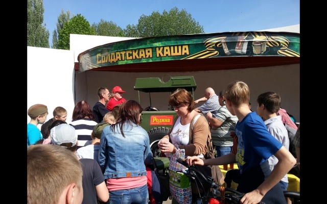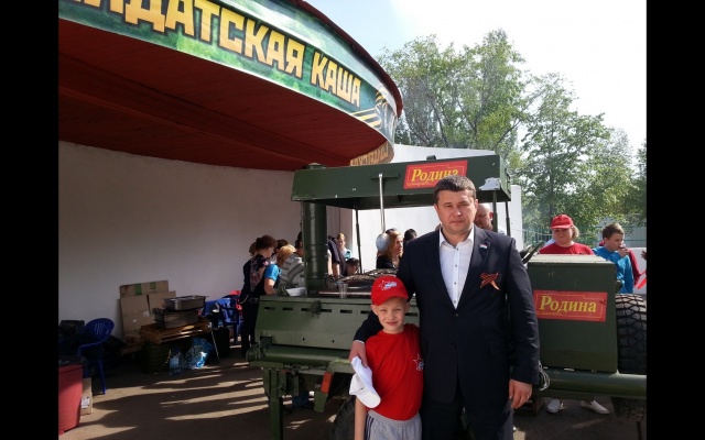 Партийцы чествовали ветеранов, угощали участников праздника солдатской кашей и крепким чаем, приготовленными на полевой кухне "РОДИНА".