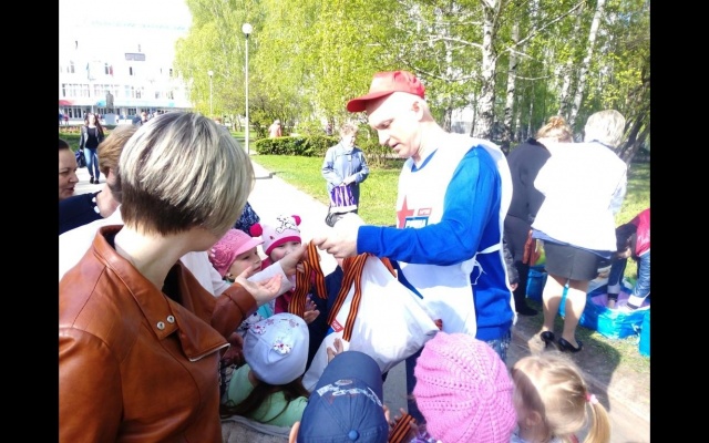Во время акции каждый желающий смог бесплатно получить георгиевскую ленточку.